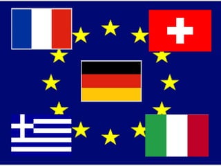 This document provides photos from family trips to various locations in Europe including Paris, Disneyland, Monet's garden, Switzerland, Germany, Greece, Italy, and the Vatican City. Key landmarks photographed include the Eiffel Tower, Notre Dame Cathedral, the Louvre, Neuschwanstein Castle, Santorini sunset, the Colosseum, and St. Peter's Basilica. The photos document the family's experiences and adventures visiting popular tourist destinations across Europe.