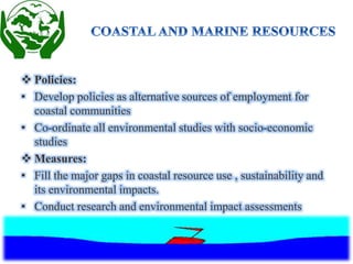 The document summarizes Pakistan's National Conservation Strategy (NCS) which was developed in the early 1990s through a multi-stakeholder process. The NCS aims to conserve natural resources, promote sustainable development, and improve resource management efficiency. It identifies priority areas for conservation including agriculture, forests, rangelands, water, fisheries, wildlife, energy, and pollution control. Recommendations include expanding the NCS with a greater focus on poverty reduction and economic development.