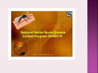 The document summarizes several national health programs and initiatives launched by the Government of India, including the National Anti Malaria Programme (1953), National Filaria Control Programme (1955), National Tuberculosis Control Programme (1962), Universal Immunization Programme (1985), National AIDS Control Programme (1987), National Cancer Control Programme (1975), National Mental Health Programme (1982), National Programme for Control of Blindness (1976), Integrated Child Development Services (1975), and National Iodine Deficiency Disorders Control Programme (1962). It provides the objectives, strategies, and outcomes of these various programs aimed at reducing disease burden and improving public health in India.