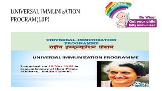 1) Universal Immunization Program (UIP) which aims to provide routine immunization and campaigns for polio, measles, and Japanese encephalitis. It oversees vaccine logistics and monitoring.