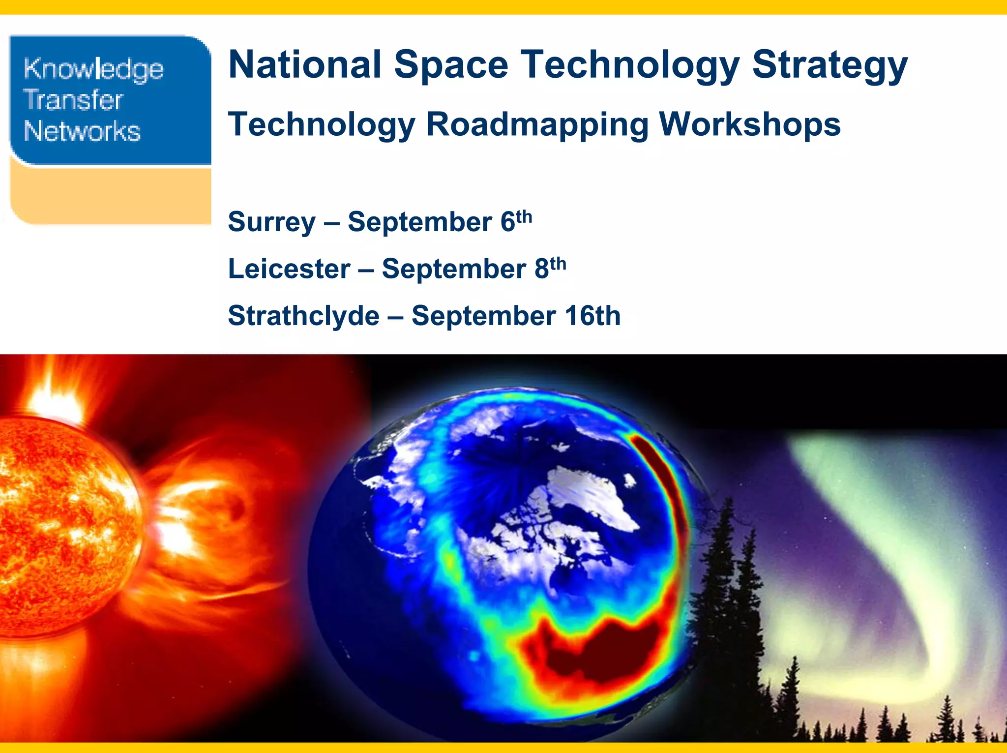 The document outlines a series of workshops focused on developing a national space technology strategy through discussions involving key leaders in the space sector from various organizations. It highlights the objectives of the workshops, progress on technology roadmaps across different sectors, and the importance of government and industry collaboration to increase the UK's market share in the global space industry. The document provides detailed information on various workstreams, including telecommunications, sensing, position navigation and timing, robotics and exploration, and access to space.