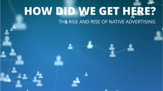 This document discusses native advertising and its rise. It begins with definitions of key terms like native advertising, content marketing, and digital/brand agencies. It then provides a brief timeline of media history from the printing press to today. Guidelines and policies for native advertising are important to manage expectations and align stakeholders. There are various types of native ads and best practices include ensuring quality, transparency, and meeting audience needs. Metrics and multi-platform campaigns are also discussed. The document concludes with an exercise to design a hypothetical native advertising campaign.
