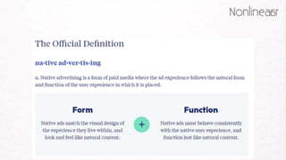 The webinar covers an overview of native advertising, including types, monetization opportunities for publishers, and user response in comparison to banner ads. It highlights various examples across mobile, desktop, and tablet platforms, as well as discusses performance tracking metrics and global trends in consumer awareness and skepticism towards native ads. Additionally, it notes that a significant percentage of publishers are adopting native advertising strategies, reflecting its rising importance in the digital marketing landscape.