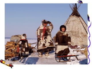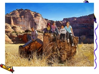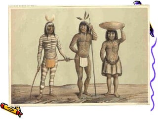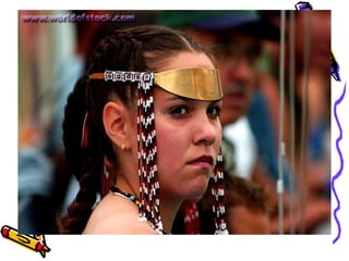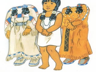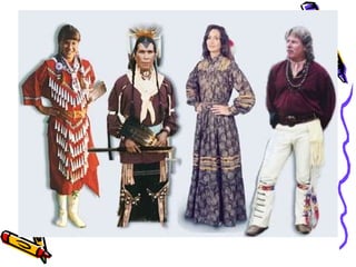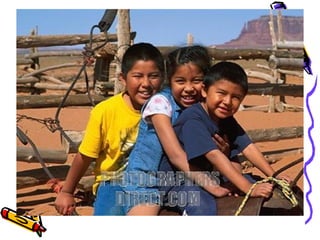 Native Americans originally lived in various parts of the United States in over 500 different tribes, each with their own unique culture, language, and traditions. The largest tribe is the Navajo, who live primarily in the southwestern states of Arizona, New Mexico, Utah, and Colorado on reservations. Native Americans traditionally lived in structures like teepees, longhouses, or earth lodges called hogans. They wore clothes made of animal skins and practiced subsistence activities like farming, hunting, fishing, and gathering to obtain food. In their free time, Native Americans participated in activities like arts, racing, and spiritual ceremonies.