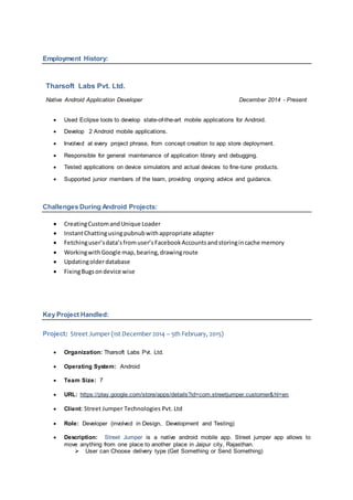 Subrata Mandal is an IT professional with 9 months of experience in mobile application development, particularly in Android native development. He has contributed to successful app projects, possesses an M.C.A. from Hindustan University, and is seeking new opportunities to enhance his skills. Key competencies include Java, JSON, and various SDKs related to mobile app development.