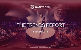 This document provides a summary of trends in marketing, storytelling, and digital culture from February 2015. It discusses emerging trends and innovations related to augmentation, healthcare technologies, ecommerce, data and privacy, social media, experiential marketing, brand storytelling, and the use of virtual reality in both entertainment and storytelling. Specific companies and projects are mentioned as examples within each trend topic.