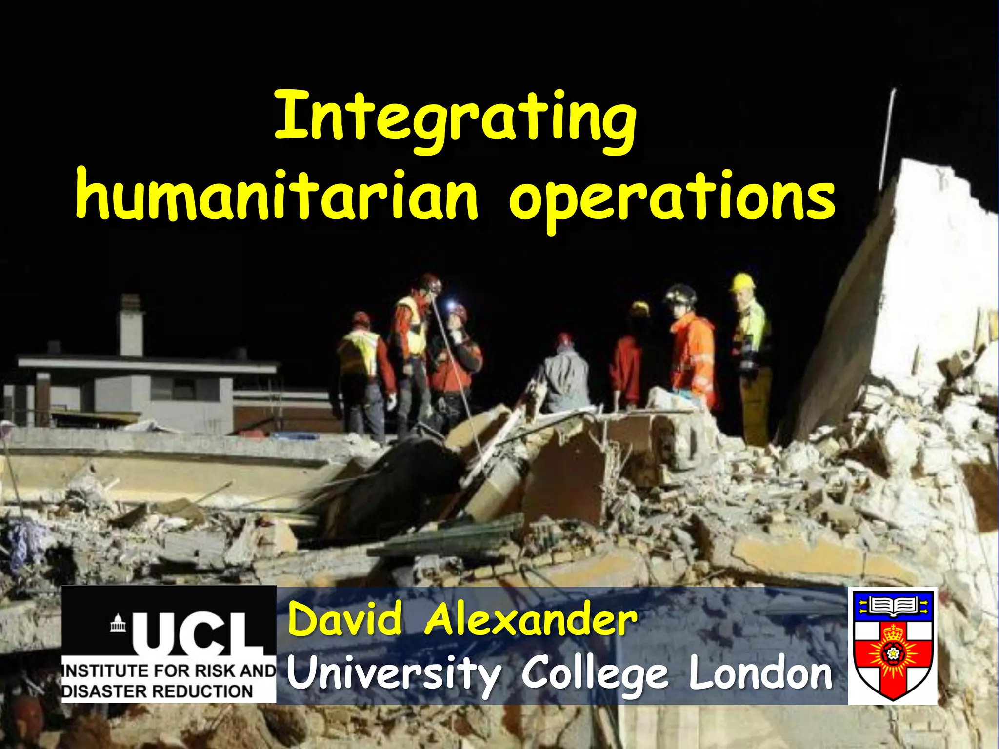 1) Humanitarian operations are complex due to factors like logistics, culture, ethics and the need for sustained commitment, especially in major disasters where dozens of countries contribute.