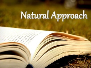 The document summarizes Stephen Krashen's theory of language acquisition, known as the Natural Approach. It was developed by Krashen and Tracy Terrell in 1983. The theory includes five main hypotheses: 1) acquisition vs learning, 2) natural order, 3) monitor, 4) input, and 5) affective filter. The Natural Approach focuses on providing comprehensible input through activities to help students acquire a language naturally without explicit instruction of grammar rules. The teacher's role is to create a low-anxiety environment and use materials to promote meaningful communication and comprehension.