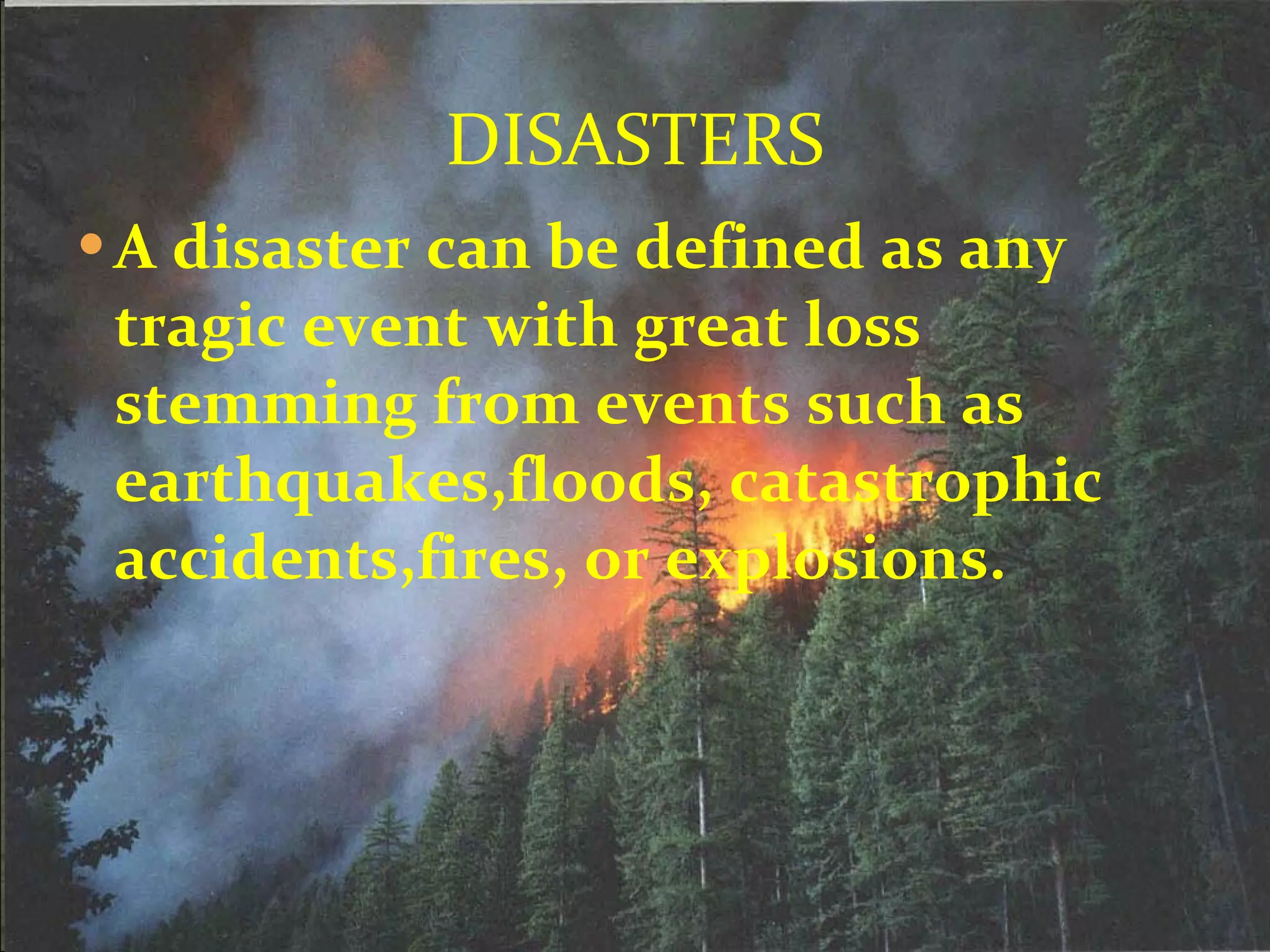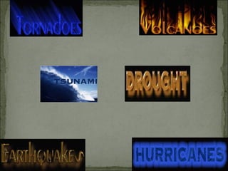 1. The document discusses different types of natural disasters such as earthquakes, tsunamis, volcanoes, droughts, hurricanes, and tornadoes as well as man-made catastrophes including global warming, plane crashes, wildfires, and infrastructure failures.