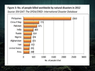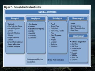 Natural disasters are events caused by nature that result in widespread damage and loss of life. Examples include earthquakes, hurricanes, droughts and flooding. Asia experiences many natural disasters including hailstorms, hurricanes, landslides, thunderstorms, tornadoes, volcanic eruptions, droughts, earthquakes, wildfires, heat waves, floods, and tsunamis. Proper preparation and disaster response teams are important to help communities impacted by natural disasters.
