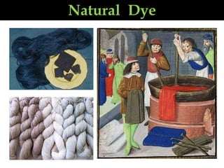 This document provides information about several natural dyes that can be used for textile dyeing, including indigo, pomegranate, madder, kamala, lac, mayrabolan, catechu, and himalayan rubrub. For each dye, it lists the common name, botanical name, trade name, and brief descriptions of the plant source and dyeing properties. The document aims to educate about natural dye options and their characteristics for colorfastness on different textile fibers like wool, silk and cotton. It appears to be from a company marketing natural dyes from India.