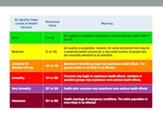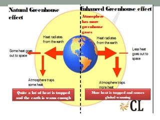 The document discusses various aspects of the natural environment and environmental issues. It covers topics like global warming, greenhouse effect, greenhouse gases, major agreements like the Kyoto Protocol and Paris Agreement. It also discusses different types of pollution like air, water and land pollution. Key terms related to the environment are explained such as carbon credits, carbon offsetting, carbon tax, carbon footprint, carbon sinks and carbon dieting. Ways to reduce carbon footprint and impact of environment on business are also mentioned.