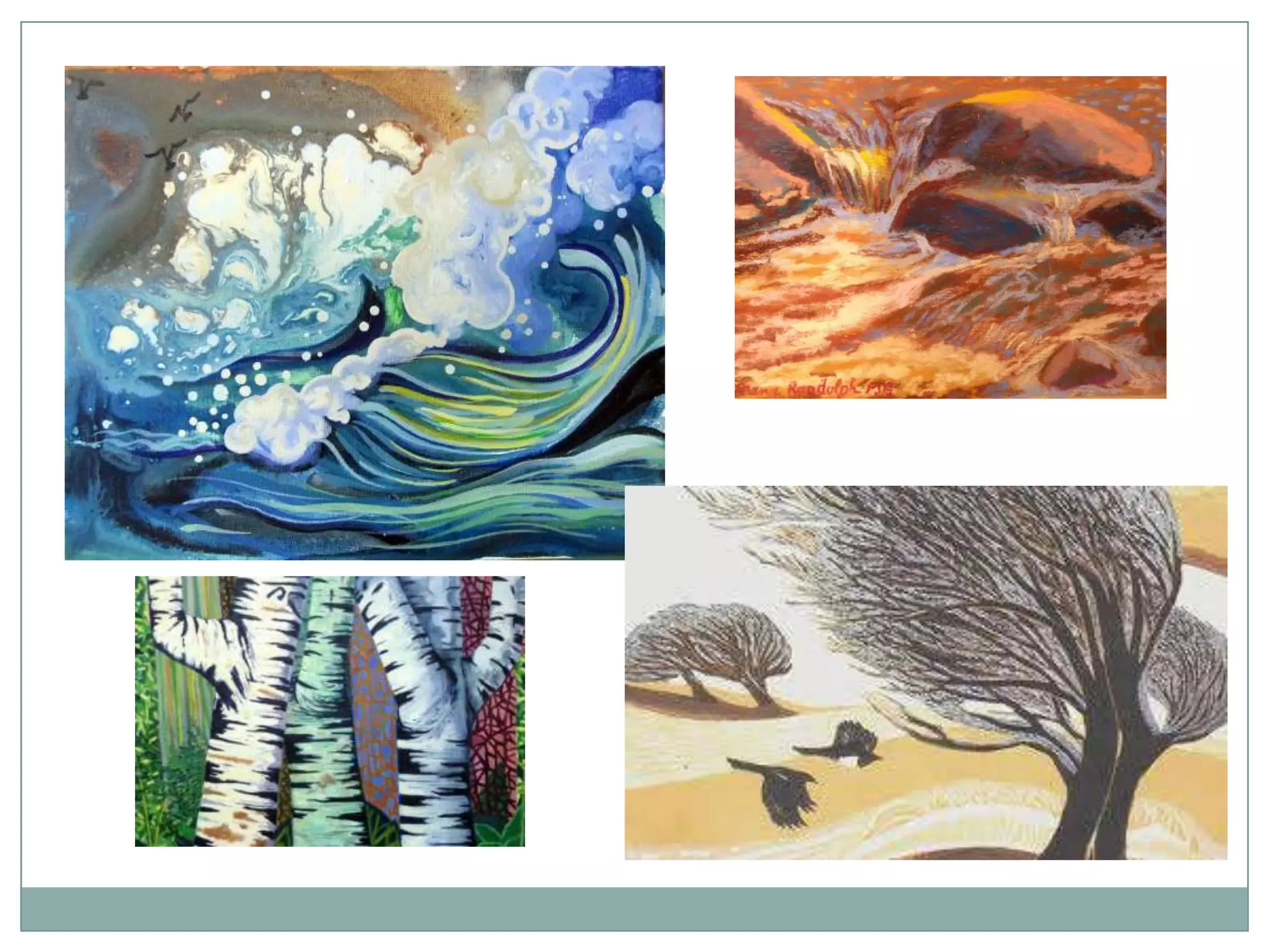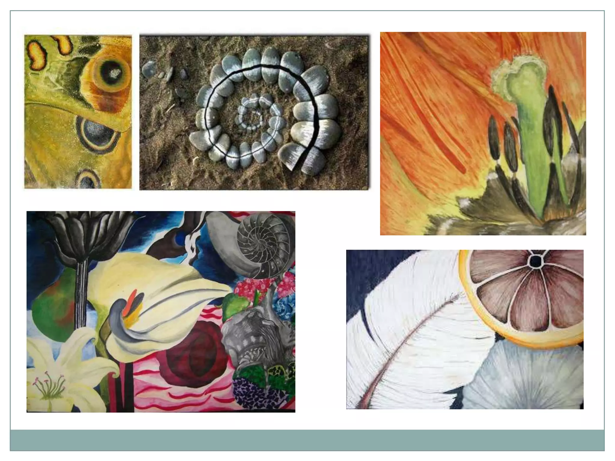 Natural forms are objects created by nature such as flowers, plants, trees, animals, geology and weather. Many artists take inspiration from natural forms by incorporating textures, viewpoints, colors, patterns, contours and symmetry found in nature into their own artwork. Examples of natural forms that have inspired artists include botany, insects, anatomy, fossils and water.