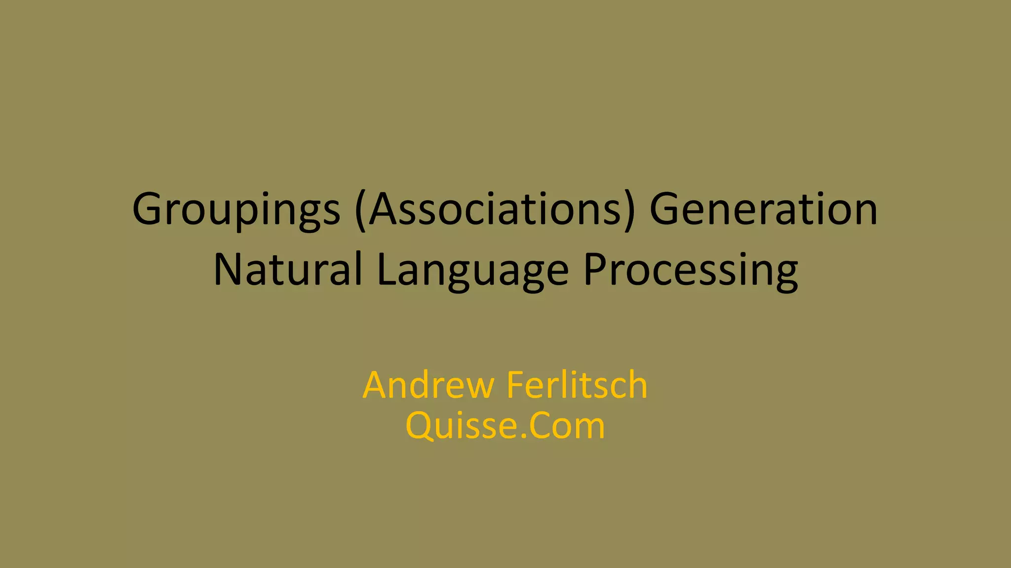 The document outlines a method for automating the generation of associations in natural language processing to aid children's learning by categorizing objects. It discusses the hierarchy of a categorical dictionary that features three levels (category, major, minor) and outlines how this structure is used to create quizzes that challenge children to identify items that do not belong in a given group. The process also varies in difficulty by adjusting the specificity of categories and subcategories involved in the quiz generation.