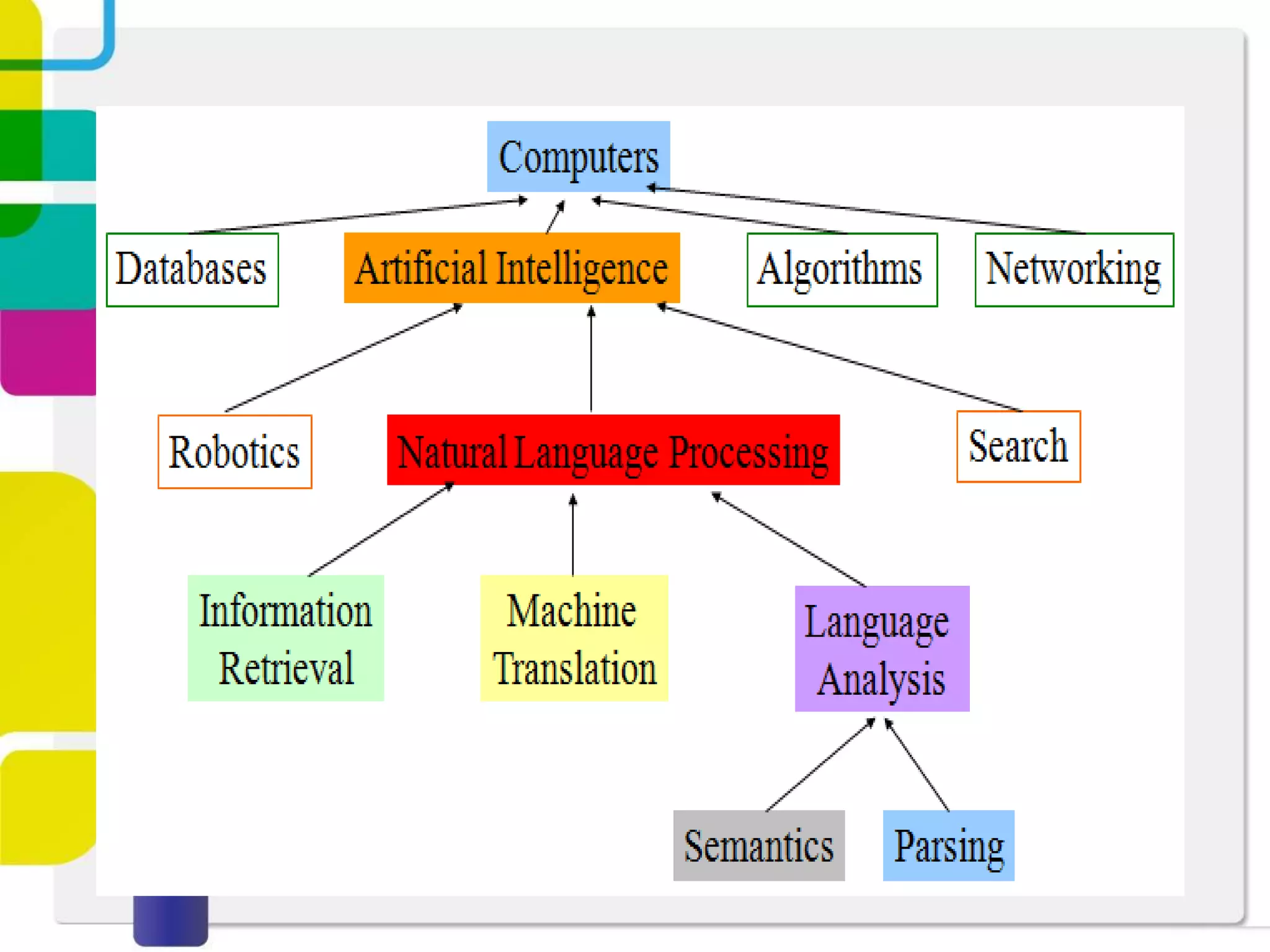 Natural Language Processing (NLP) is a computational method for analyzing and representing human language in various forms, primarily text and speech, to enable machines to understand and generate language like humans. NLP has applications in machine translation, information retrieval, text categorization, and grammar checking, among others. The discipline draws from linguistics, cognitive science, and statistics to facilitate effective communication between humans and machines.