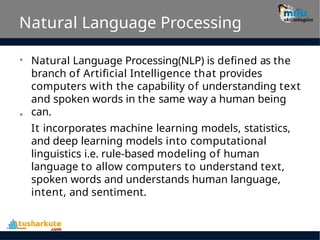 •Natural Language Processing(NLP) is defined as the