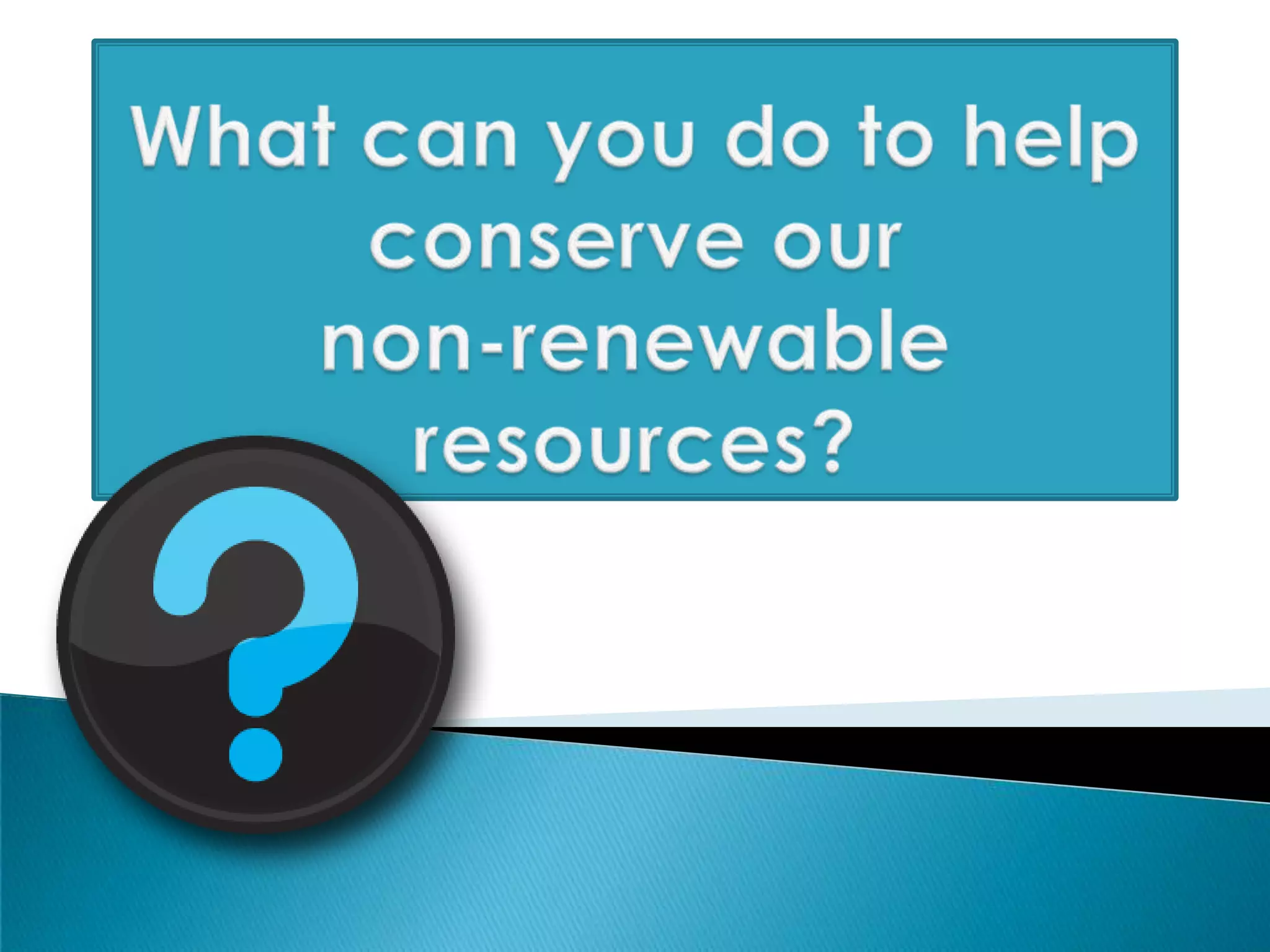 The document discusses Earth's natural resources and how humans use and conserve them. It defines renewable and non-renewable resources, with examples like trees and water being renewable, while coal, petroleum and natural gas being non-renewable. It emphasizes the importance of conserving non-renewable energy resources since most come from the sun but renew slowly. Methods of conservation include using resources only when necessary, reducing waste, reusing and recycling materials, and preventing pollution of water and other resources.