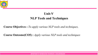 Course Outcome(CO5) : Apply various NLP tools and techniques