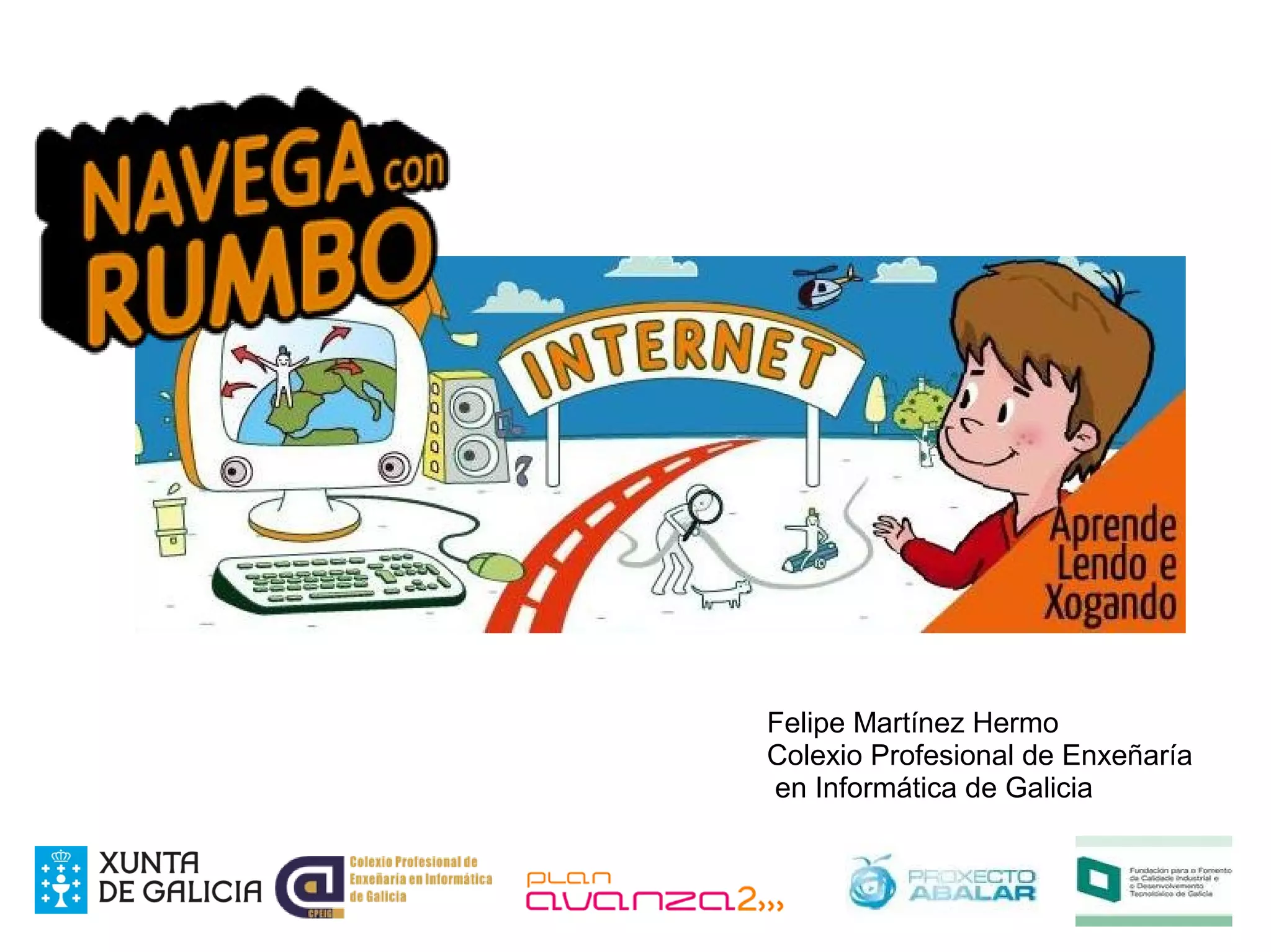 Presentación cedida á Biblioteca do CEIP Amor Ruibal por Felipe Martínez Hermo, Enxeñeiro Informático pertencente ao CPEIG (Colexio Profesional de Enxeñaría en Informática de Galicia), no día que impartiu no centro a charla informativa "Navega con rumbo" sobre a navegación segura no ciberespazo.