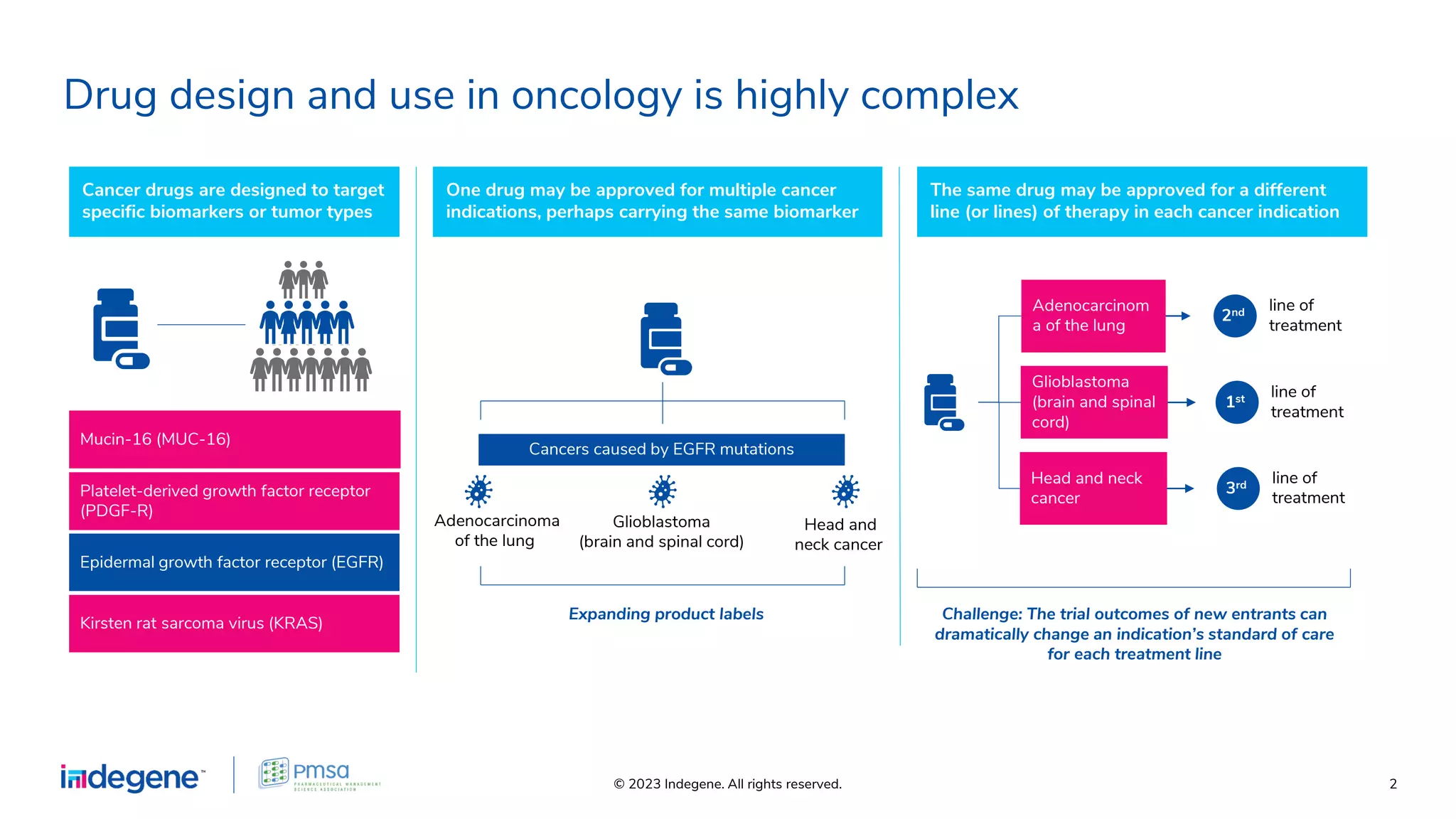 The document discusses the complexities of forecasting in the oncology market, emphasizing the need for granular forecasting models to capture patient treatment processes and market dynamics. It outlines key challenges such as variability in input parameters and the importance of using patient-flow models to effectively predict treatment outcomes. It also highlights a case study of a global pharma client that implemented a macro-enabled interface for tracking and predicting revenue needs across multiple tumor types and countries.