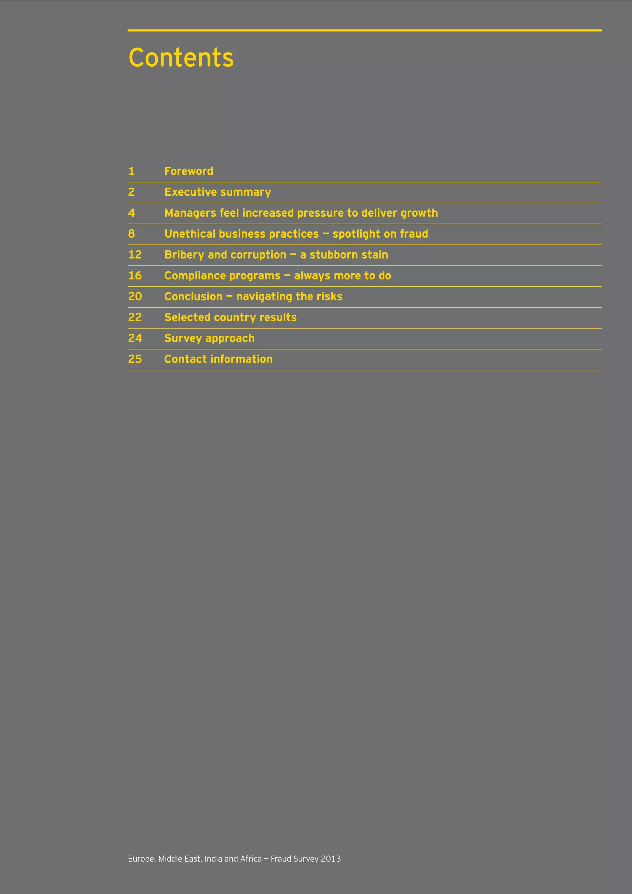 Management feels increased pressure to deliver growth in challenging market conditions. This pressure, combined with downward pressure on salaries and bonuses, increases the risk of unethical conduct like fraud. The survey found evidence that some companies are engaging in practices like overstating revenues and underreporting costs. While compliance programs have made progress, they may not be as effective as management thinks, and some employees feel such programs harm competitiveness. Businesses must own the problem of fraud risk, ensure compliance is relevant to all employees, and continue asking questions to effectively manage this ongoing challenge.