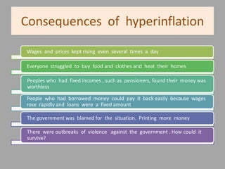 The document discusses the rise of Adolf Hitler and the Nazi party in Germany following World War 1 and the Treaty of Versailles. It describes how Germans felt betrayed by the treaty's terms, leading to economic crisis and unrest. Hitler exploited these feelings by blaming Jews and promising to return Germany to greatness. He gained popularity and used intimidation tactics to seize power legally, becoming dictator and establishing a brutal racist regime that systematically persecuted and murdered millions of Jews and others.