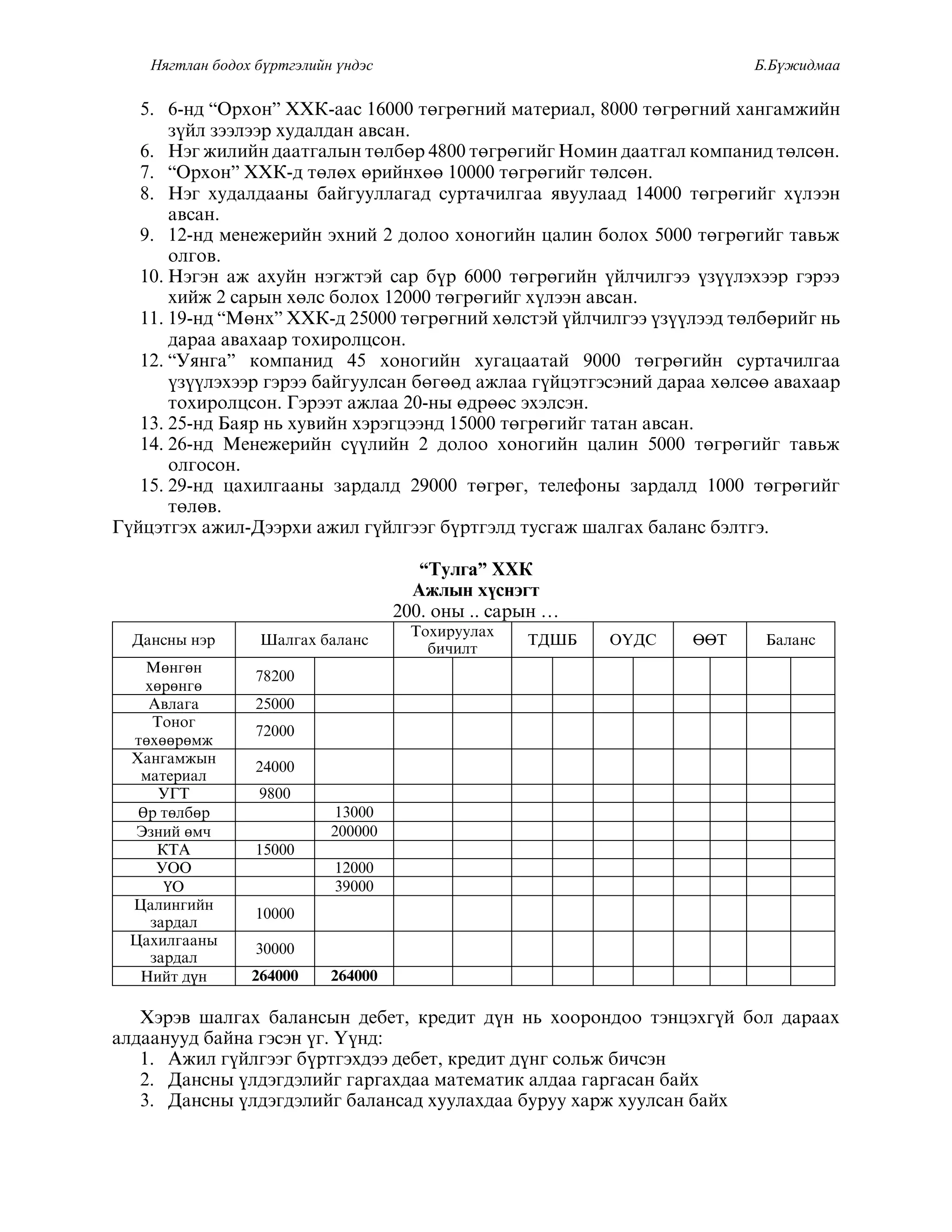 õ¿ñíýãò íü øàëãàõ áàëàíñ, òîõèðóóëàõ áè÷èëò, òîõèðñàíû äàðààõ øàëãàõ áàëàíñ,