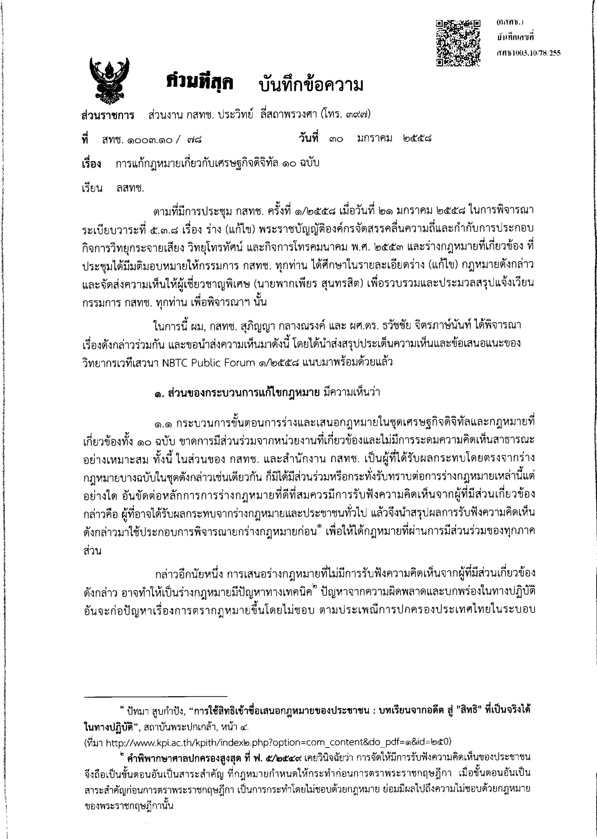 ความเห็น กสทช. ต่อ ร่าง พ.ร.บ.ดิจิทัล
