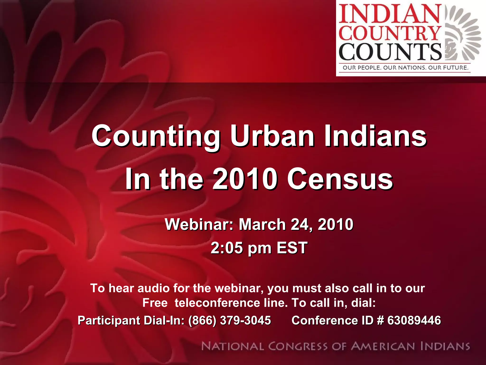 The webinar on counting urban Indians during the 2010 Census provided an overview of the census operations, timelines, and urban-specific resources for participation. Key outreach efforts included a public service announcement and various community events aimed at encouraging Native Americans to be counted. The document outlines important dates, assistance programs, and the importance of accurately reporting tribal affiliation during the census process.