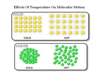 2) Matter is made of very tiny particles that are in continuous motion, have space between them, and attract each other. The three states of matter are solids, liquids, and gases, which differ in properties like compressibility and particle movement.