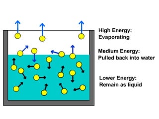 3) Changes of state, such as melting, boiling, sublimation, and evaporation occur when heat is added or removed and cause phase transitions between