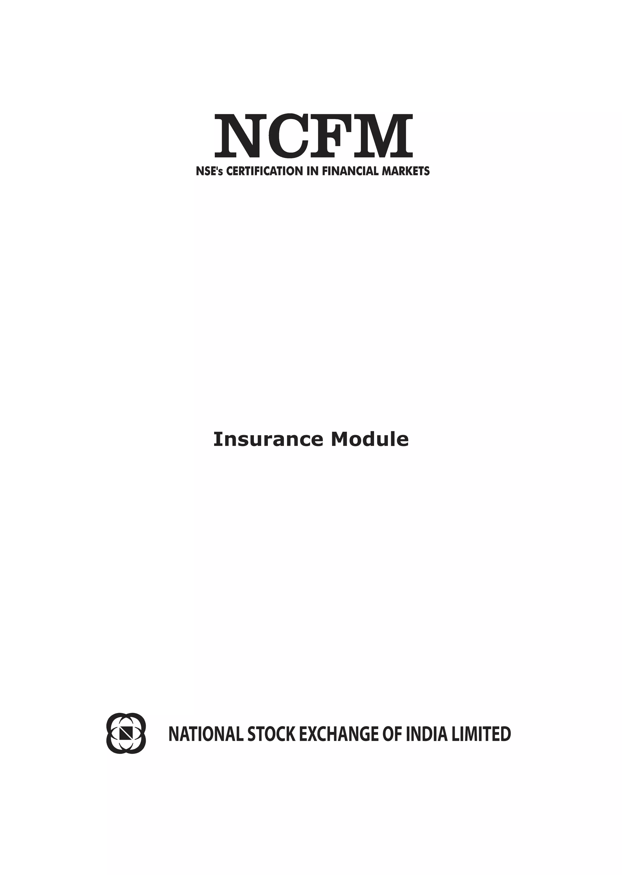 This document provides details about the Insurance Module offered by the National Stock Exchange of India. It includes 15 key points:
