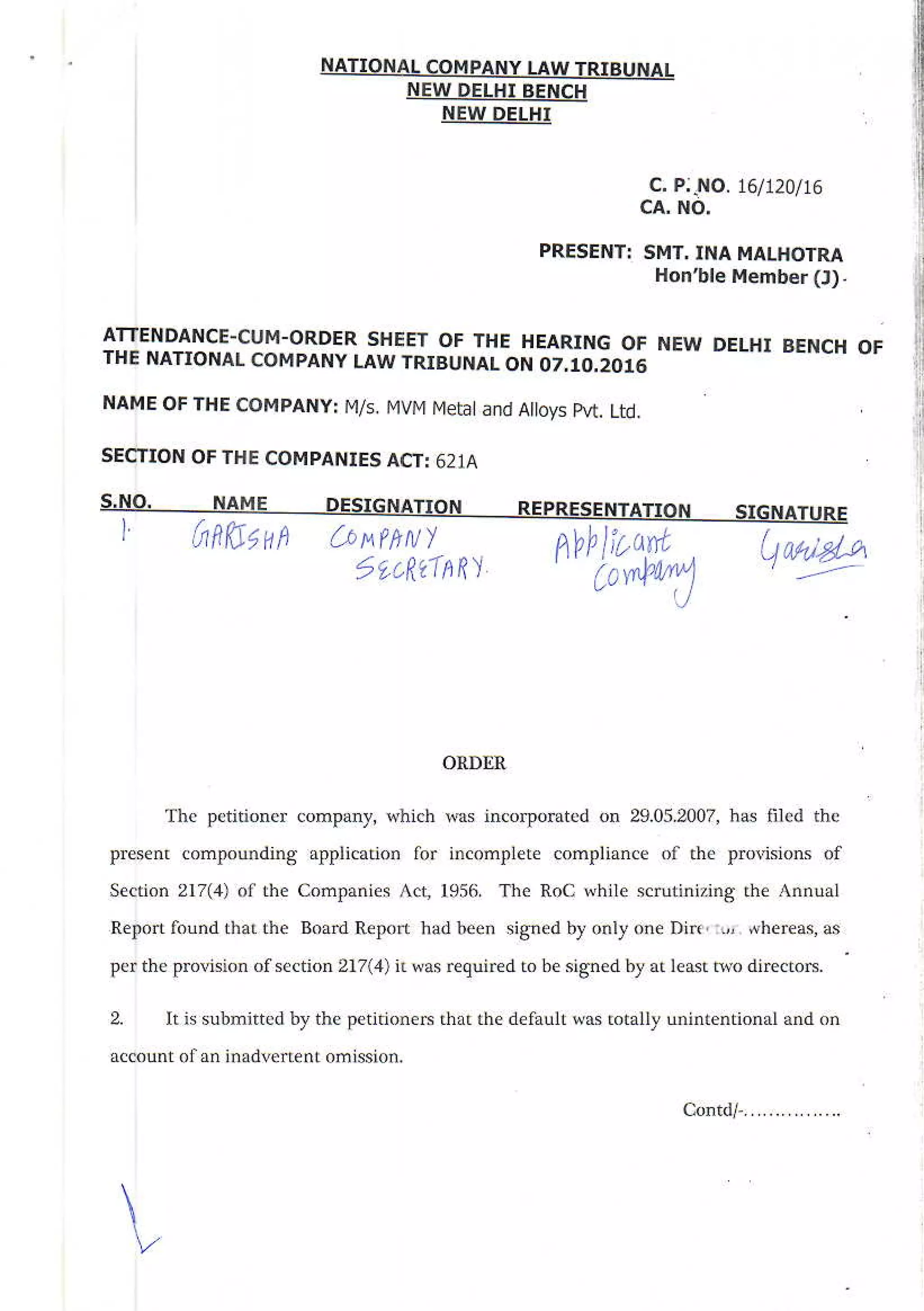 1. The petitioner company filed a compounding application for non-compliance with Section 217(4) of the Companies Act, 1956 regarding signing of the Board Report.