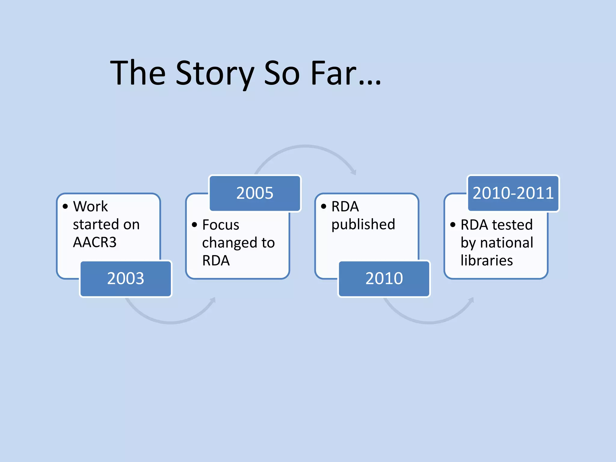 RDA implementation is scheduled for March 31, 2013. Testers of RDA recommended improvements like rewriting instructions in plain English and ensuring community involvement. Differences from AACR2 include lack of abbreviations, more transcription of what is seen, and new fields in MARC like 336, 337, 338 for content/media/carrier types. Linked data and semantic web approaches may make relationships between works more explicit over time. Preparing for RDA involves decisions about cataloging workflows and training.