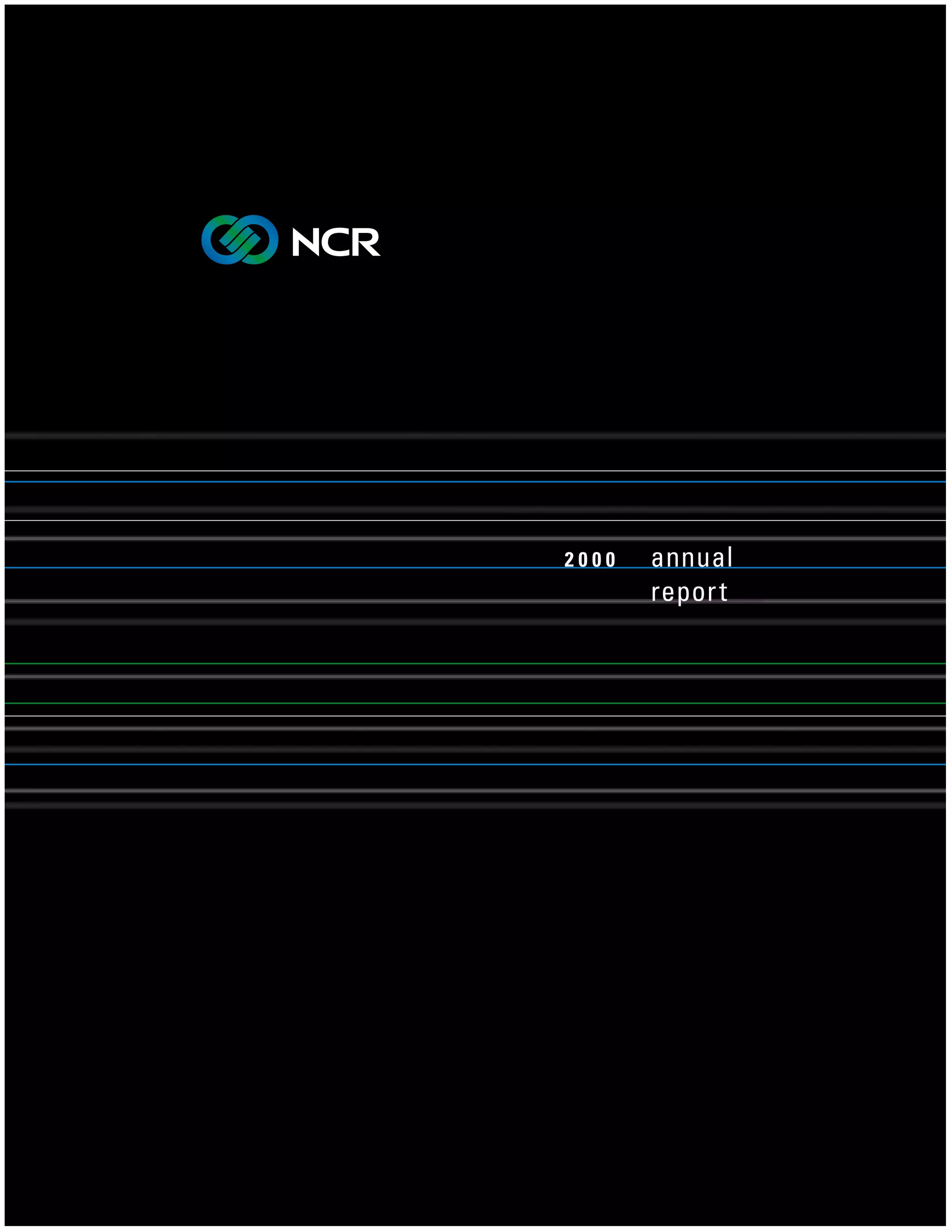 This document is NCR Corporation's 2000 annual report. It summarizes the company's financial performance for 2000, including revenue of $5.959 billion and operating income of $270 million, a 33% increase over 1999. It discusses NCR's key business solutions of retail store automation, financial self service (ATMs), and data warehousing. It also describes organizational changes made in 2000 to position the business for growth, including creating separate operating units for retail/financial and data warehousing.