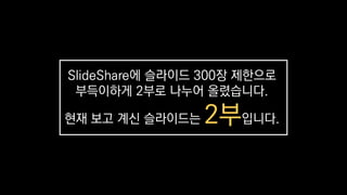 (SlideShare에 슬라이드 300장 제한으로 2부로 나누어 올렸습니다. 불편하시더라도 양해 부탁드립니다.)