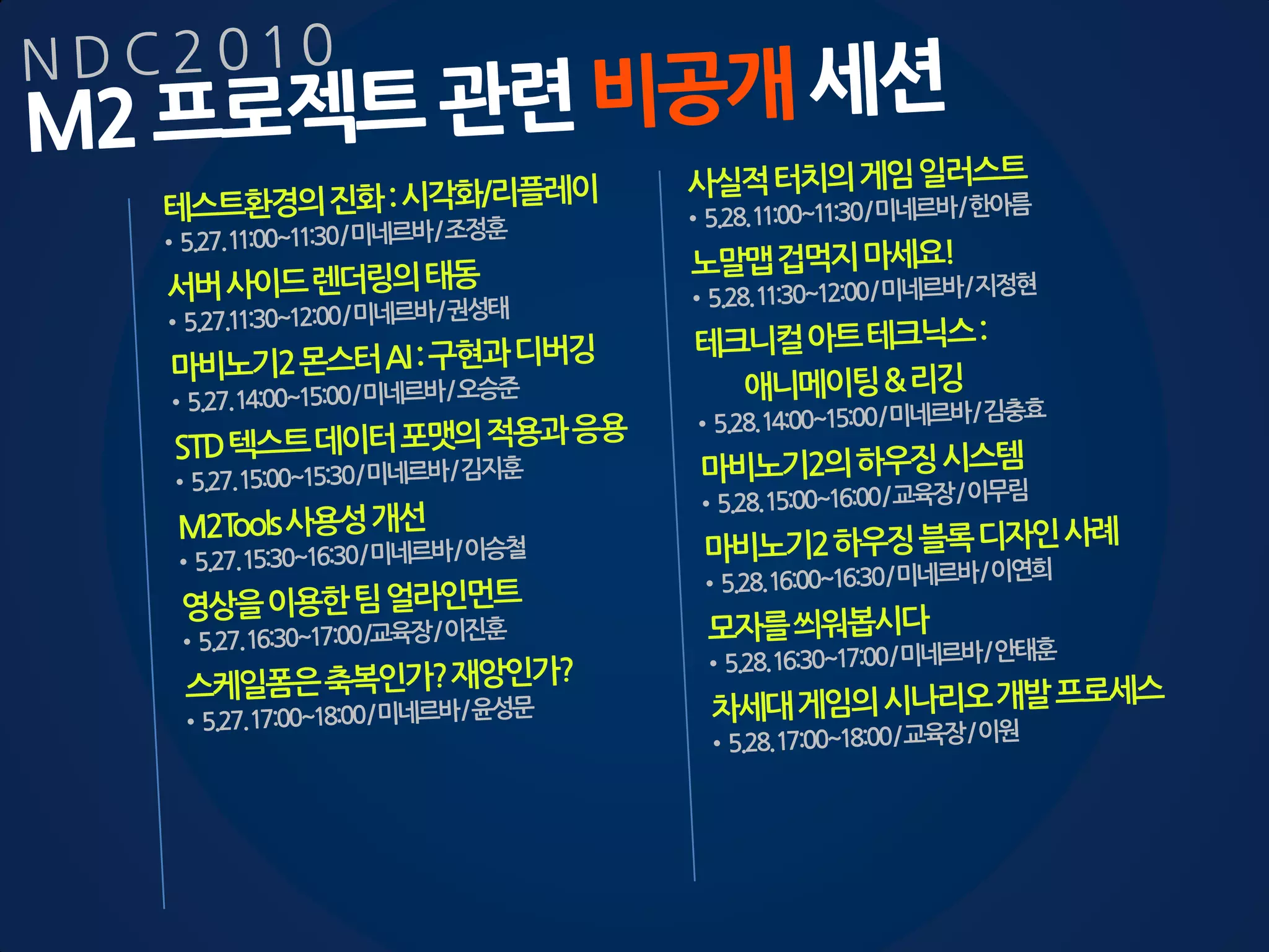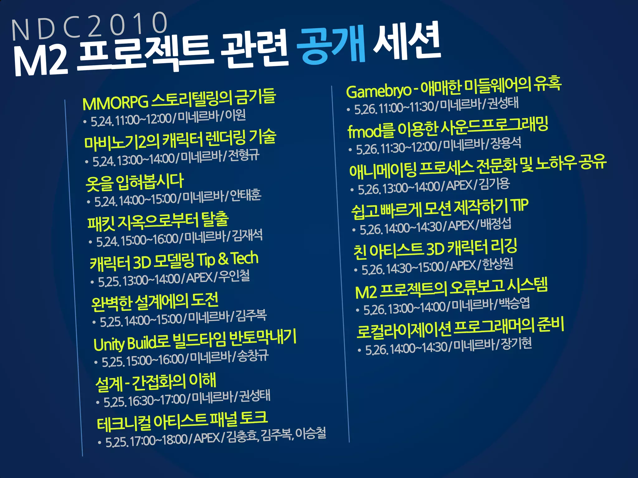 M2 team, Game Development Team for Project M2 in longCAT (The 3rd New Development Division in NEXON Corp.). M2 team Director is Kim, Dong-Gun | Project M2 is produced by Kim, Dong-Gun