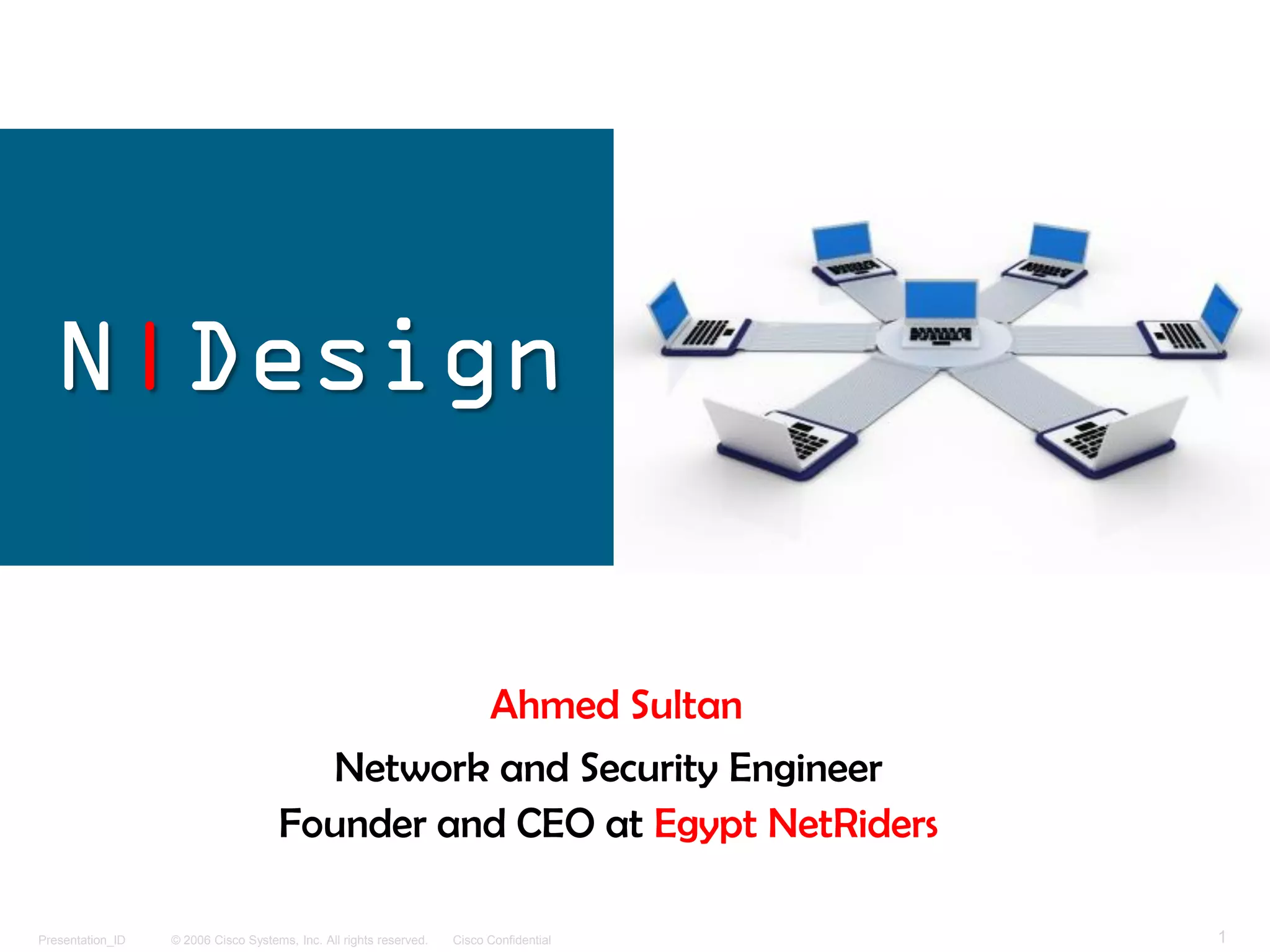 The document discusses network design and related topics. It provides an agenda that covers network topology, data networks, converged networks, network designers, hierarchical network models, traffic flow analysis, network design certifications, and network design tools. It also includes diagrams illustrating network topologies, the career path of network designers, and Cisco network design certification levels.