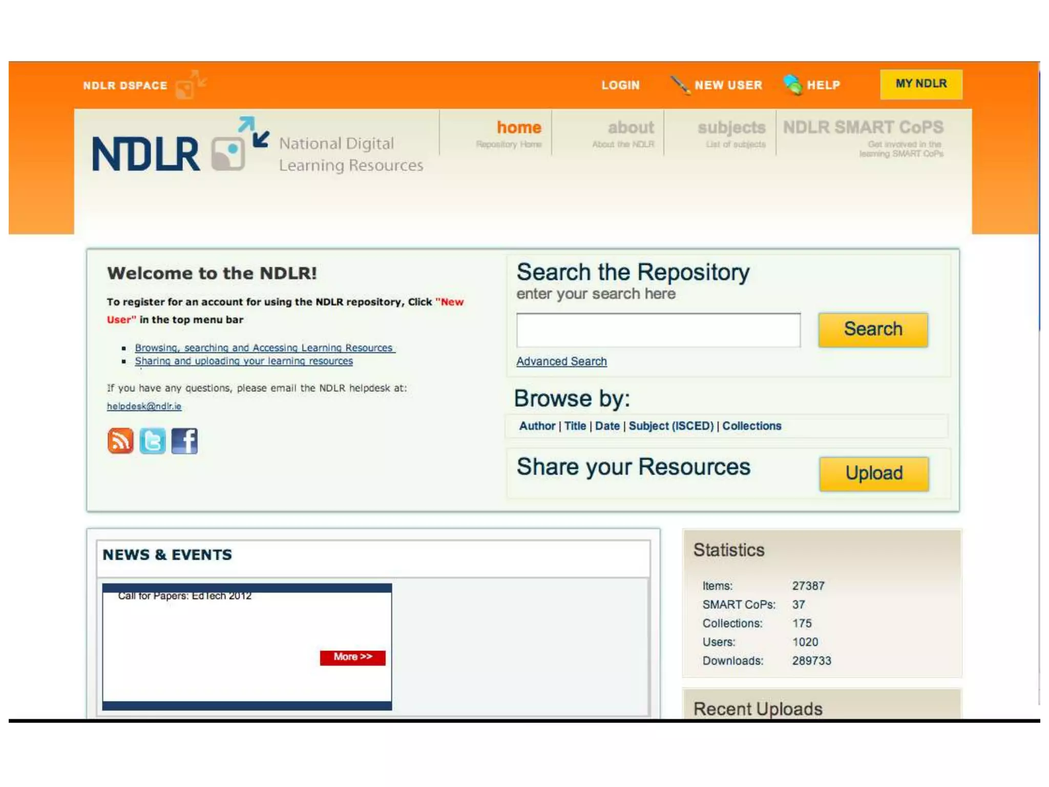 The document discusses the integration of the National Digital Learning Resources (NDLR) with Moodle2, highlighting the benefits such as improved accessibility and resource sharing for academics in Irish higher education. It outlines the functionalities of DSpace and the specific integration methods, planning trials at Sligo IT, and presents various opportunities for collaboration and resource management through the NDLR. For further information on installation and support, individuals are directed to the NDLR website and contact points.