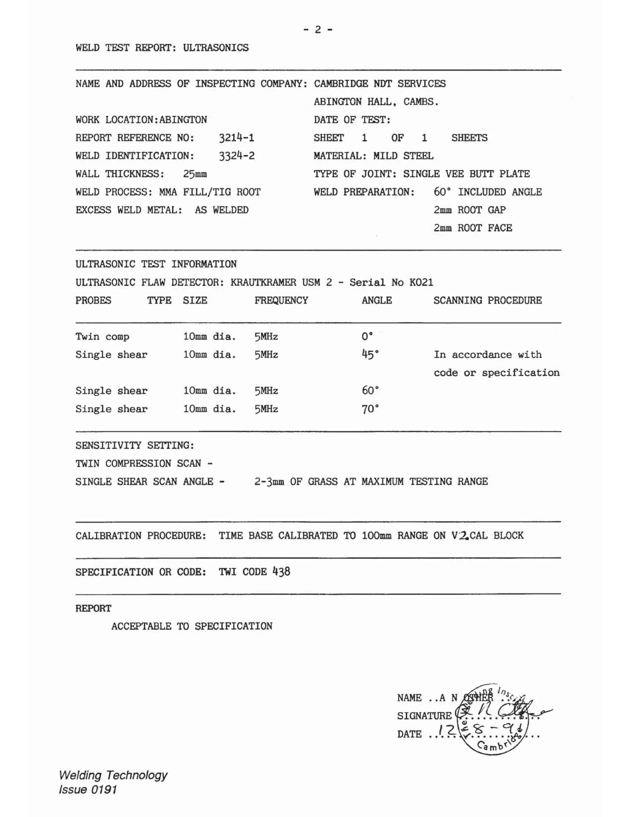 Ndt report sample and answer cswip 3.2