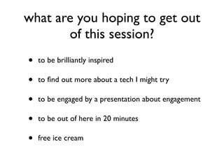 1) The document discusses the benefits of using NearPod, an interactive presentation platform, for teaching. It notes that NearPod allows teachers to instantly gauge student understanding through poll and drawing questions, and to review student responses over time.