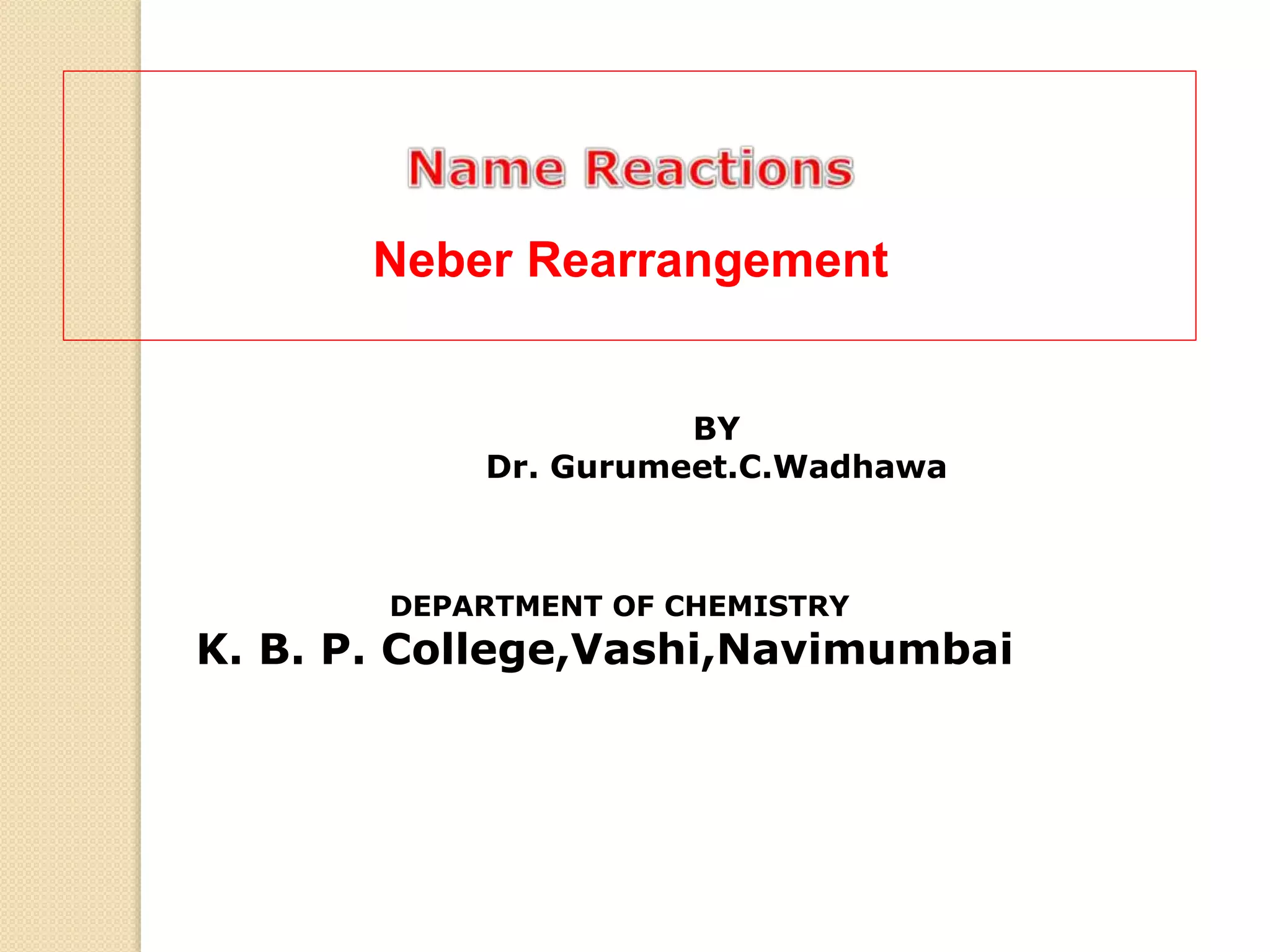 The Neber rearrangement is a base-induced rearrangement of O-acylated ketoximes to the corresponding α-amino ketones. It was discovered in 1926 by Neber and Friedolsheim during their investigation of the Beckmann rearrangement. The Neber rearrangement has since become an important synthetic tool for synthesizing heterocycles that use amino ketones as intermediates. It proceeds through an alkoxide-induced rearrangement of the O-acylated ketoxime to form an α-amino ketone product. There are some limitations in that aldoximes do not undergo the rearrangement and substrates generally require a methylene group in the α-position.