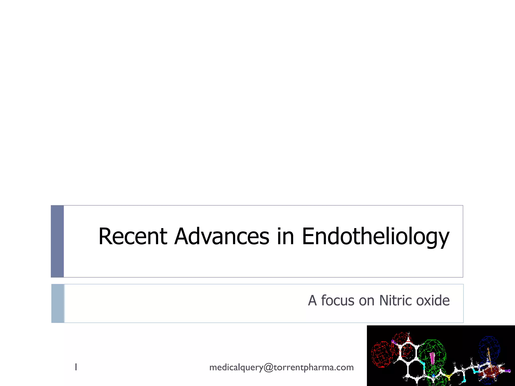 The document summarizes recent advances in understanding the endothelium and nitric oxide, with a focus on the beta blocker nebivolol. Nebivolol is a highly selective beta-1 receptor blocker that also stimulates nitric oxide production, giving it vasodilatory effects. Unlike other beta blockers, nebivolol has been shown to improve endothelial function, exercise capacity, and left ventricular function in heart failure and hypertension without impairing glucose or lipid metabolism.