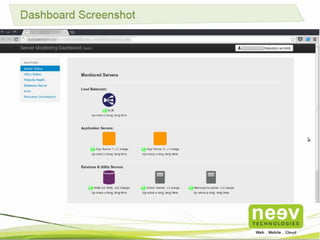 Neev Technologies, established in 2005 and funded by Basil Partners, specializes in cloud services and custom application development with a focus on e-commerce, video streaming, and mobile applications. The company has development centers in India and offices globally, managing cloud infrastructure for over 650 websites and handling millions of hits weekly. They offer cloud infrastructure support plans tailored to various business sizes, emphasizing fault tolerance, auto-scaling, and cost reduction in their past projects.