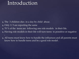 1) Having positive role models can motivate teens and help guide them in their career and life goals, while negative role models can influence teens to engage in harmful behaviors.