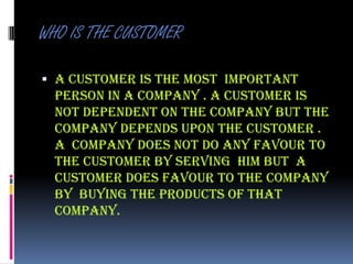 This document discusses different types of customers that salespeople may encounter and how to negotiate with each type. It identifies silent customers, women customers, anxious customers, rude customers, bargain hunter customers, argumentative customers, talkative customers, and impulsive customers. For each type, it provides a brief description and tips for how a salesperson should negotiate with and address the needs of that particular customer type. The overall message is that an effective salesperson must understand different customer personalities and be able to tailor their sales approach accordingly.