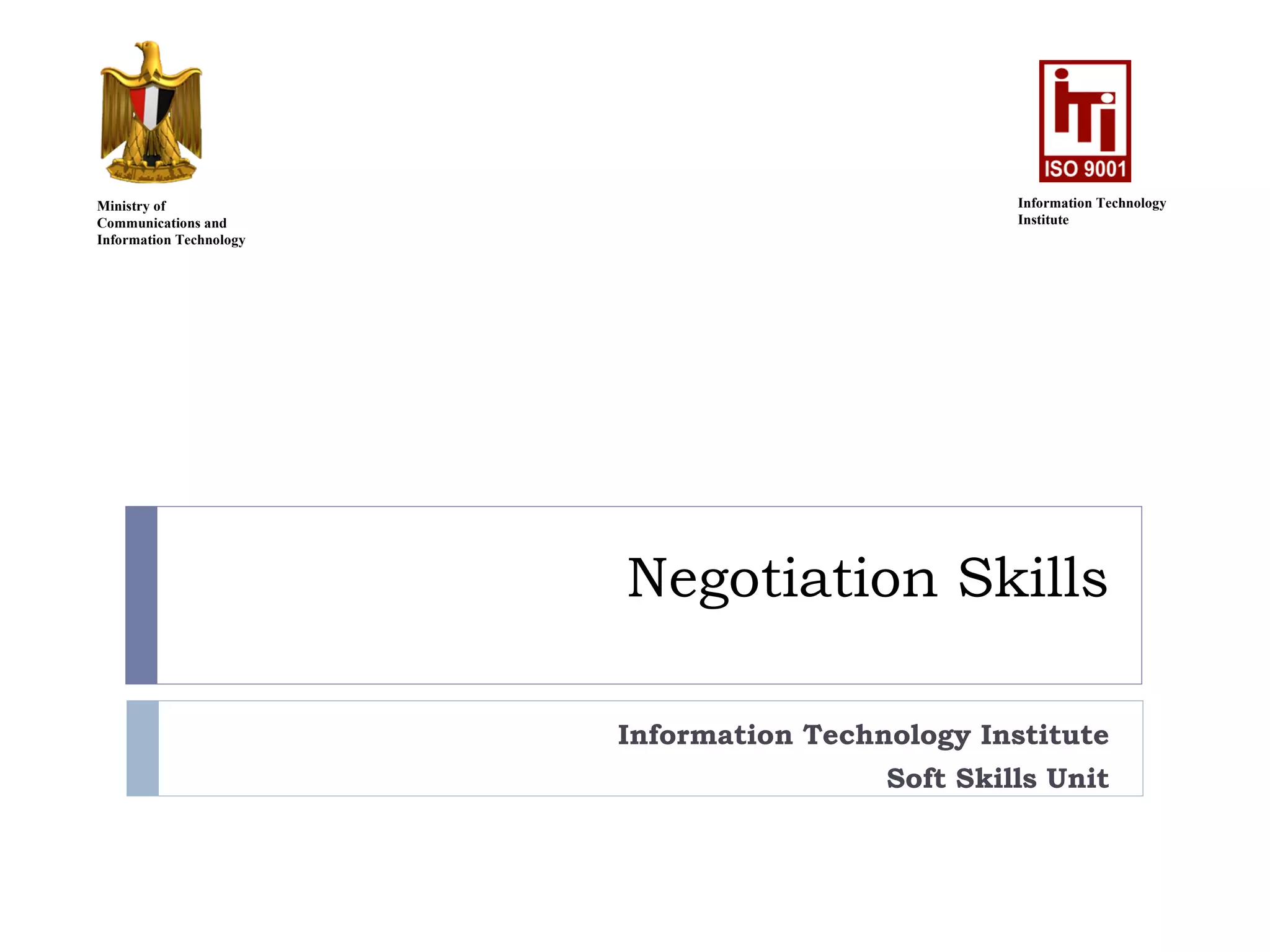 The document discusses negotiation skills and conflict management. It describes the negotiation process as having 5 stages: planning and preparation, relationship building, information exchange, persuasion attempts, and concessions/agreement. It also discusses setting negotiation strategies, different types of negotiations like haggling and bargaining, and resolving conflicts through various techniques like problem solving, compromise, and altering organizational structures. Non-verbal communication cues that can provide insights during negotiations are also outlined.