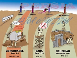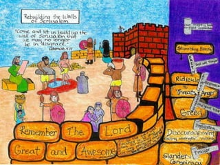 Nehemiah faced opposition when rebuilding Jerusalem's walls but was not deterred by fear. He acknowledged his fears to the king but refused to let fear stop God's work. When undertaking tasks for God, expect opposition but press on, trusting that God will help accomplish his purposes. Spiritual renewal can start with one person's vision; Nehemiah inspired others with his dream, and through teamwork they rebuilt the walls despite obstacles.