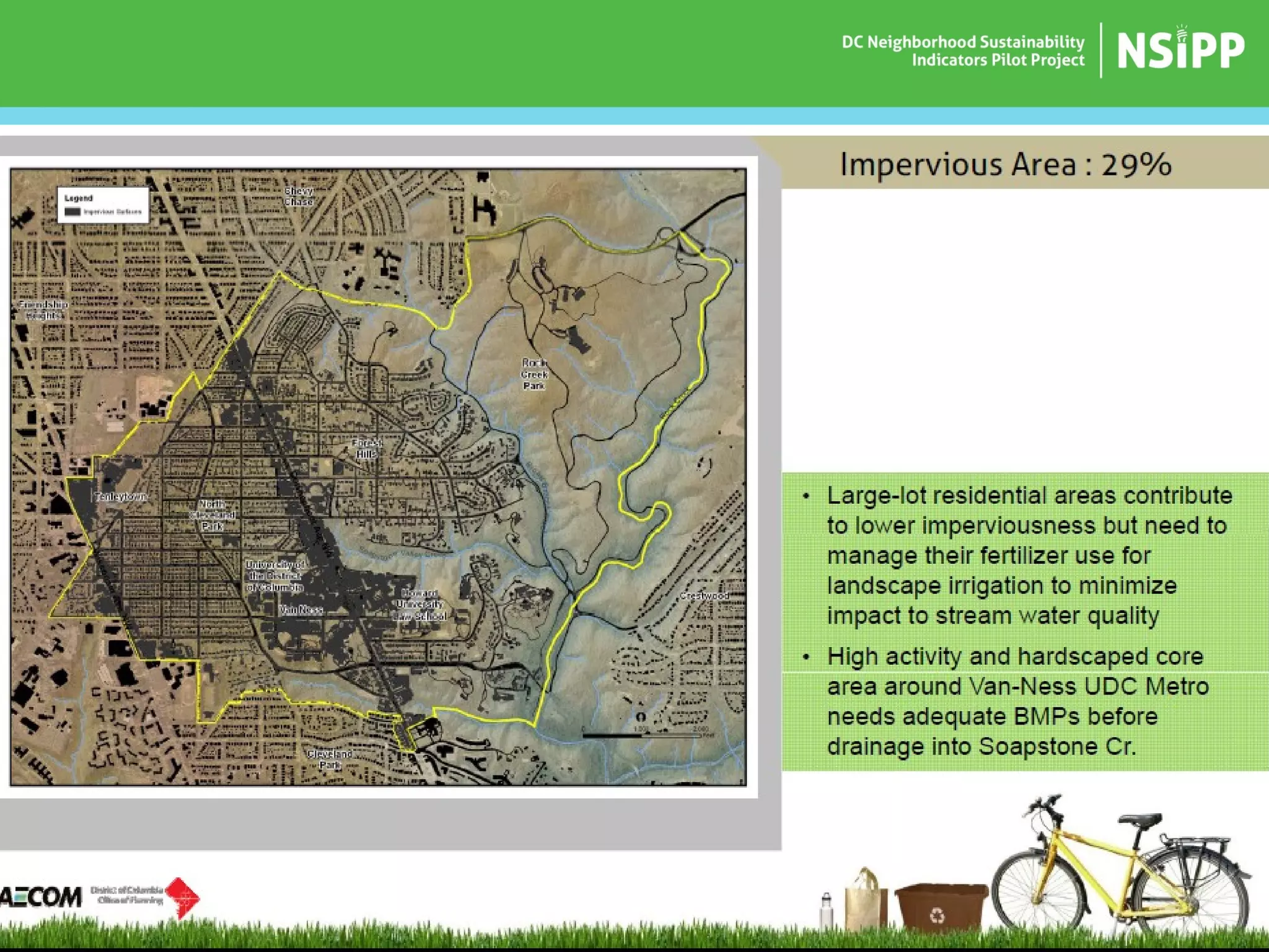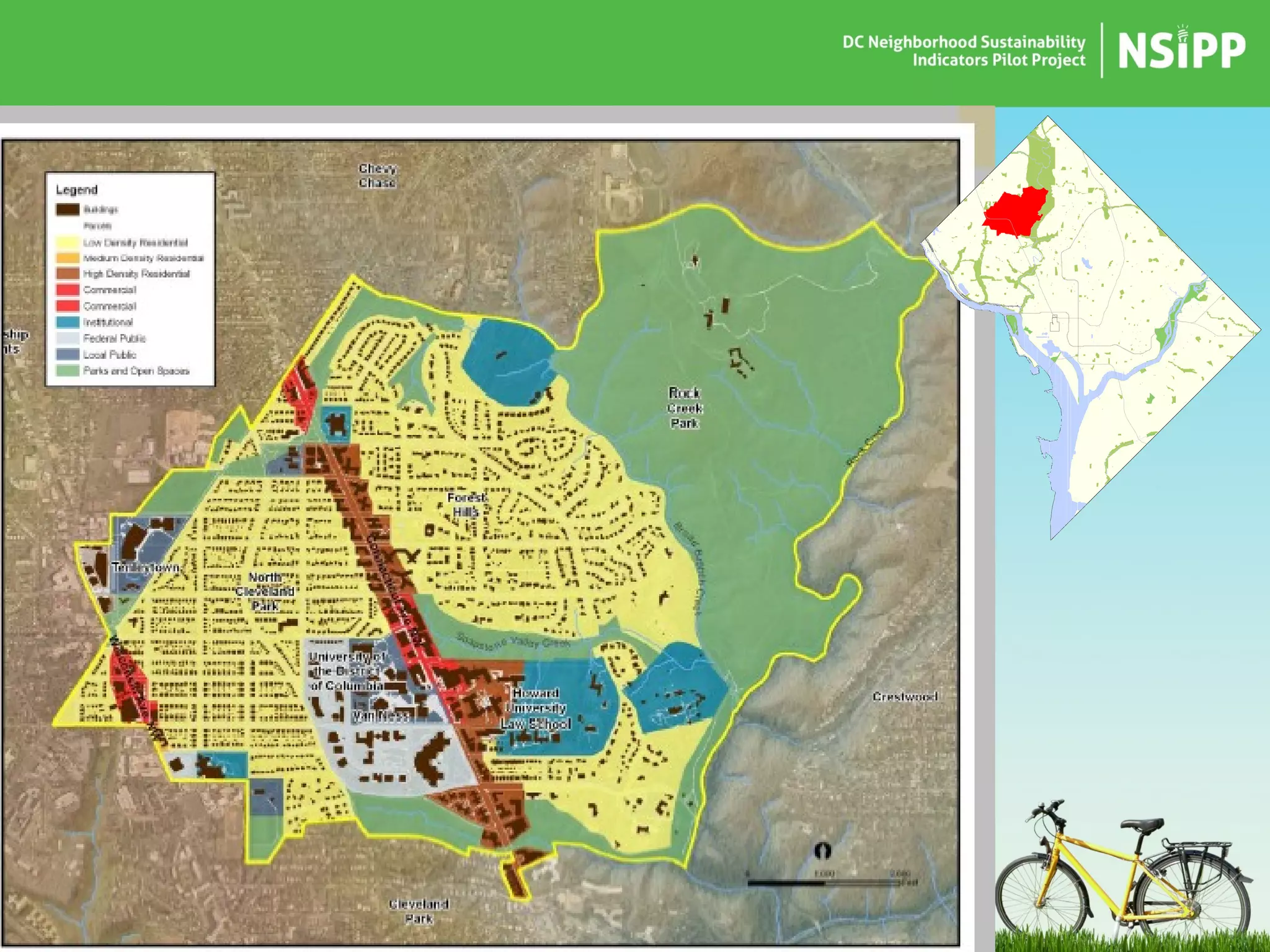 The Washington DC Neighborhood Sustainability Indicators Pilot Project (NSIPP) focuses on addressing unsustainable growth and environmental challenges through community-driven strategies. It aims to create sustainable neighborhoods by increasing energy conservation, improving water quality, and fostering local green businesses. The project encourages participatory planning and community involvement to track progress and implement sustainable practices.
