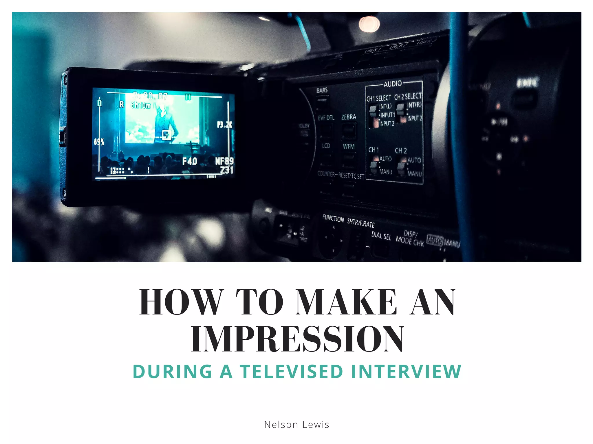This document provides tips for making a good impression during a televised interview. It recommends practicing mock interviews in advance to identify areas for improvement like posture and unclear speech. Anticipate possible questions and prepare refined answers. When on camera, wear a tried-and-true outfit in bold colors that complement your complexion without distracting patterns. Maintain eye contact, limit hand gestures, speak clearly without rushing, and convey a friendly expression when listening to the interviewer.